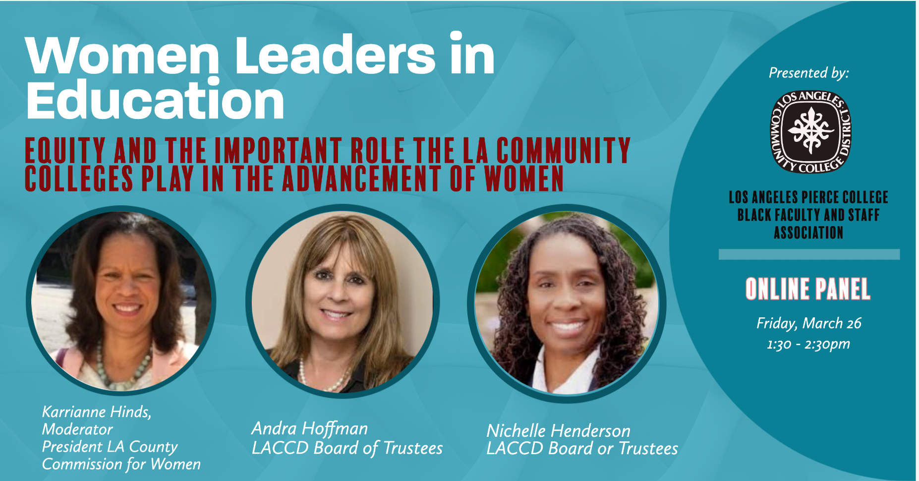 We were able to meet on zoom, at least 40 women from all over the district to chat about the work/life balance of women in education. It was Nichelle Henderson’s first year on the LACCD Board of Trustees.