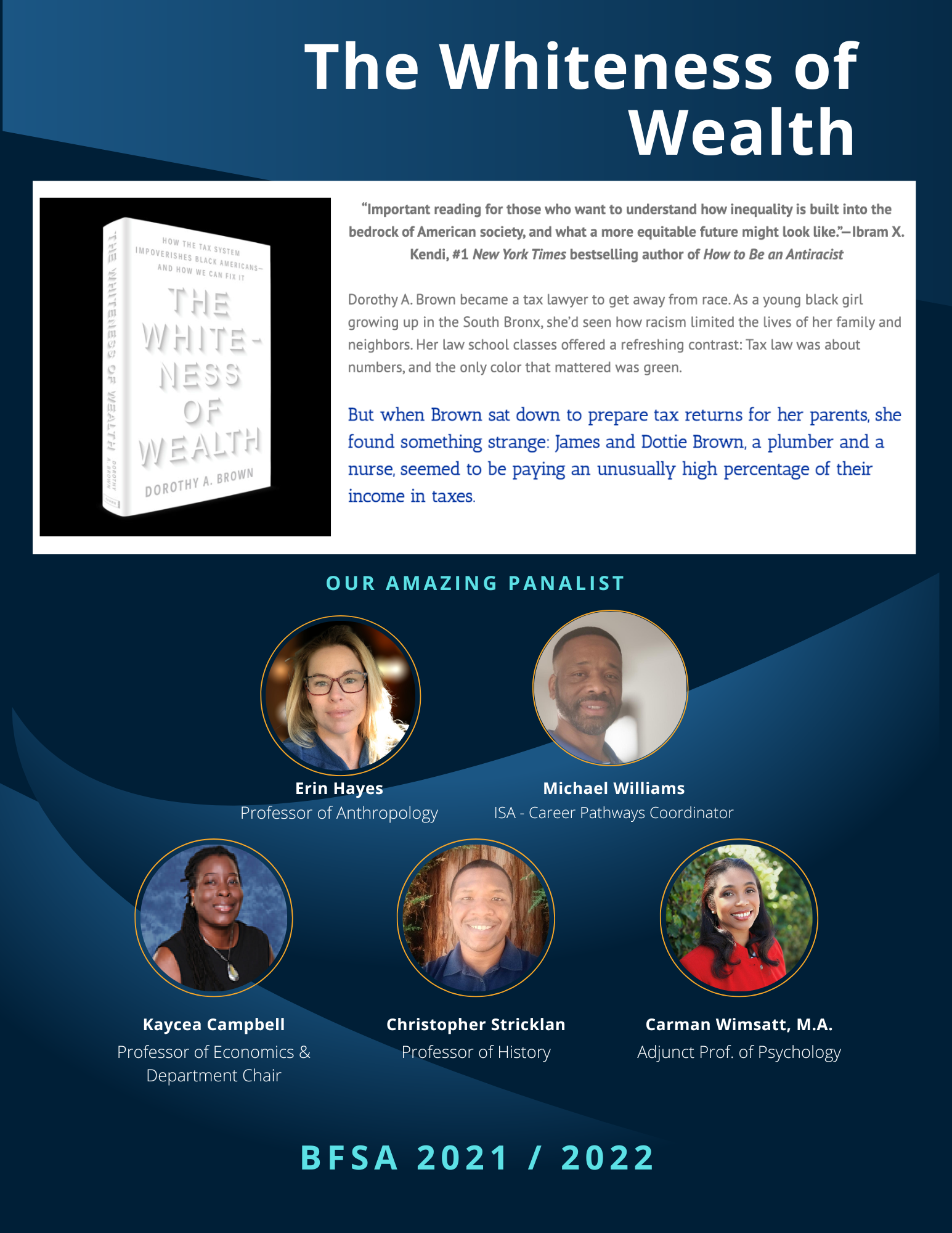 February is Black History Month, which recognizes the many, often overlooked, contributions African Americans have made to all aspects of American history. BFSA aims to carry this tradition. Lisa’s contribution to the fabric of our campus is difficult to pin down! She does so much for so many and never looks for recognition.